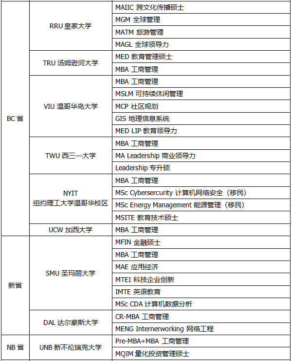 加誠加拿大碩士選校列表