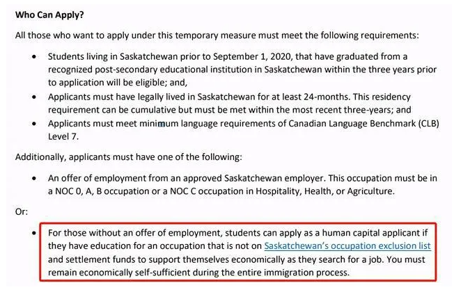 已經(jīng)在薩省找到工作有Job offer的留學(xué)生,且職位為0、A、B類,或?qū)儆诰频?、衛(wèi)生或農(nóng)業(yè)相關(guān)的C類工作也能夠符合該臨時(shí)政策的申請(qǐng)要求。