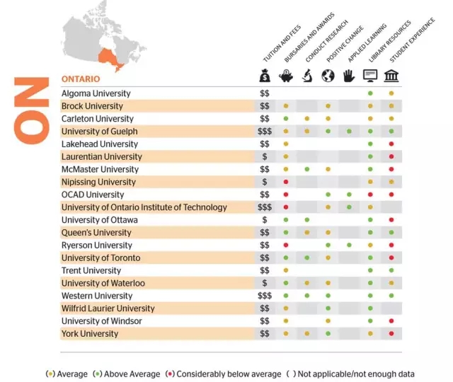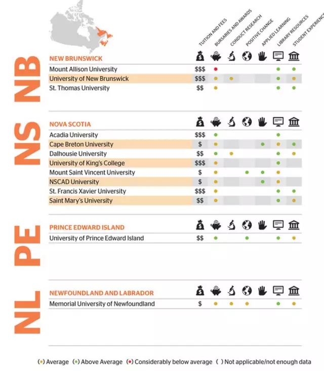 加拿大環(huán)球郵報(bào)發(fā)布了今年的大學(xué)報(bào)告,通過(guò)對(duì)學(xué)生的調(diào)查問(wèn)卷,針對(duì)童鞋們關(guān)心的7個(gè)方面進(jìn)行了對(duì)比:學(xué)費(fèi)、獎(jiǎng)學(xué)金、研究、發(fā)展、實(shí)踐、圖書(shū)館和學(xué)生體驗(yàn),將大學(xué)的水平分為3個(gè)水平:平均;偏上;偏下。來(lái)看看加拿大童鞋們心中,各省大學(xué)哪家強(qiáng)吧~