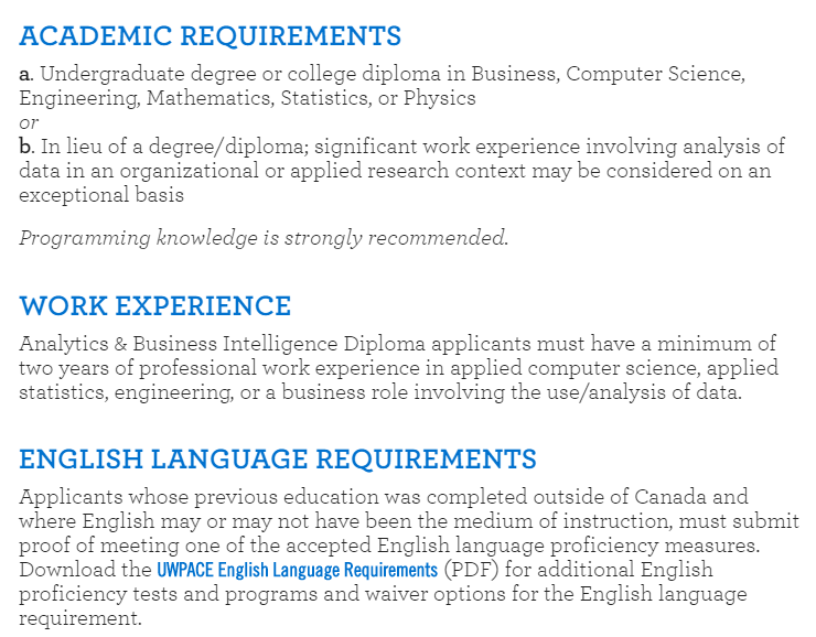 PACE專業(yè)錄取要求: