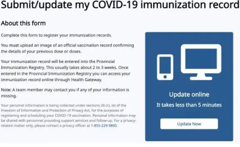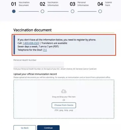 全部完成后點(diǎn)擊continue按鈕進(jìn)入最后一步。在此預(yù)覽并編輯好之前填寫的全部內(nèi)容之后,就可以打勾提交了。如信息缺失,省政府會(huì)有專門的人員與您聯(lián)系。該記錄上傳到BC省免疫登記處大約需要2到3周時(shí)間,一旦登記成功,就可以通過Health Gateway在線訪問您的免疫記錄。