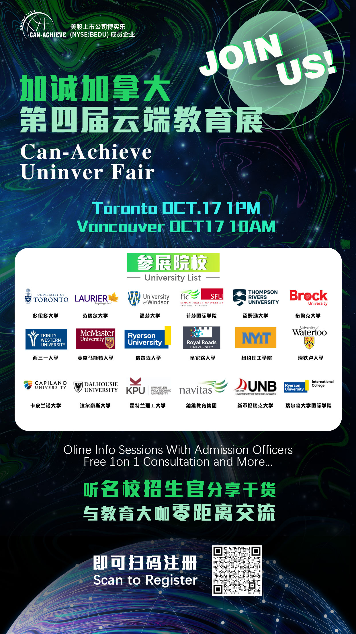 與多大、滑鐵盧在內(nèi)名校招生官線上互動(dòng)