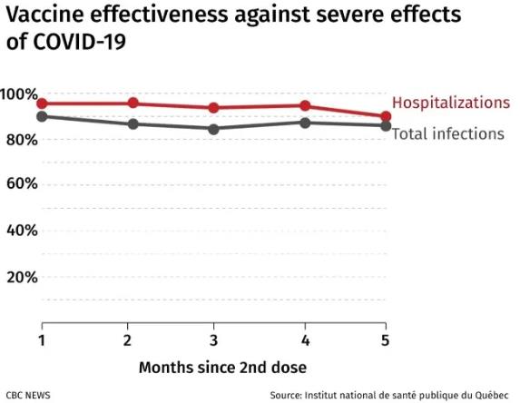 5月30日至9月11日,魁省共有181人死于COVID-19,其中只有3人完全接種了疫苗。研究人員表示,根據(jù)對近130萬人口的分析,相當(dāng)于疫苗對死亡的有效性高達(dá)97%。