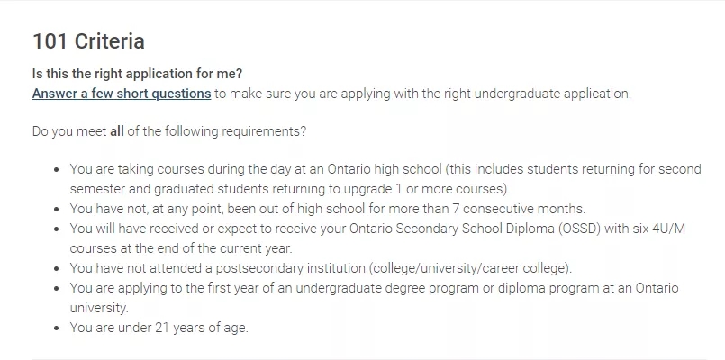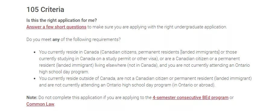 也就是說(shuō),國(guó)內(nèi)沒有OSSD身份的學(xué)生,申請(qǐng)安省大學(xué)只能通過105通道進(jìn)行大學(xué)填報(bào)申請(qǐng)。