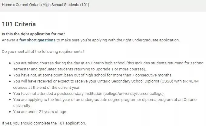 總結(jié):21周歲以下,在安省高中就讀12年級課程且可正常獲得安省高中畢業(yè)證的學(xué)生均可通過OUAC101通道申請安省的大學(xué)或?qū)W院。