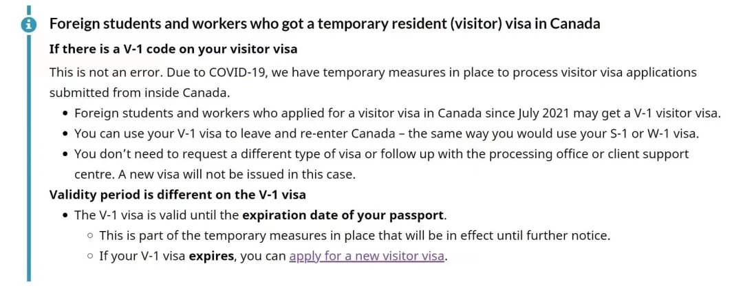1、從2021年7月其,在加拿大申請訪問簽證(小簽)的留學生和工簽認識,都可能獲得V-1簽證(移民局在條文中使用了“may”,代表并不100%保證可以拿到v-1簽證);