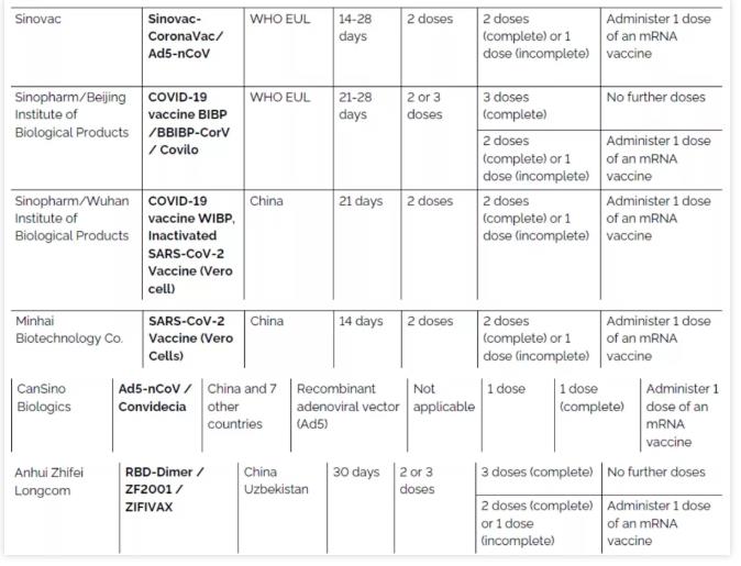 BC省跟隨WHO的建議,承認(rèn)WHO的認(rèn)可疫苗,即包括中國科興和北京生物疫苗。但BC省不要求接種科興和北京生物的接種者接種加強(qiáng)針。但BC不承認(rèn)武漢生物、康泰、安徽智飛和康希諾。
