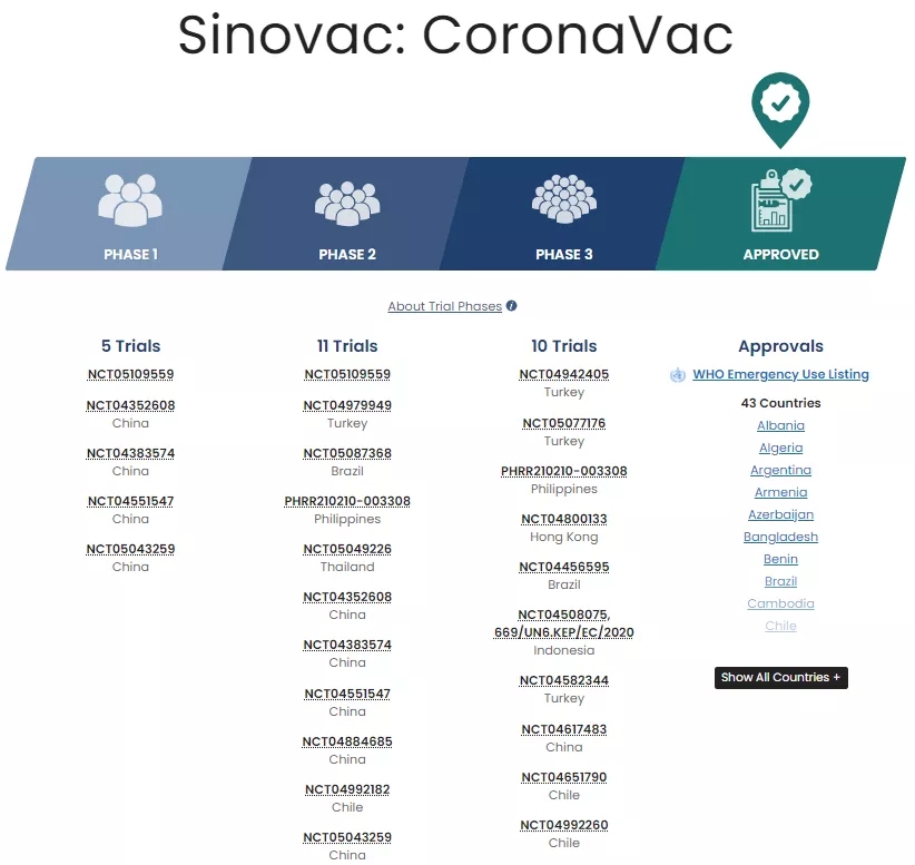 科興不需要冷凍,疫苗可以在2–8°C的溫度下運輸和冷藏,受到諸多南美國家的追捧,并且得到了43個國家的批準(zhǔn)使用。