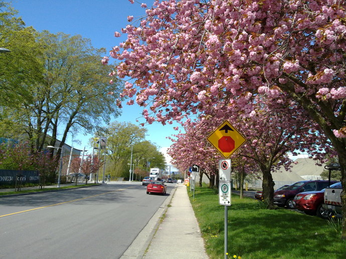 剛一回到溫哥華,過馬路總是戰(zhàn)戰(zhàn)兢兢的。“老外”們習(xí)慣開快車,到路口不提前減速,那氣勢總讓我覺得他是要撞過來的似的,再加上在北京已經(jīng)養(yǎng)成了在人行橫道上“人要讓車”的良好習(xí)慣,所以每當(dāng)有車開過來,總是下意識地停下腳步。