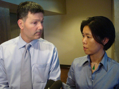 多市議員黃慧文(右)與Glenn du Baeremaeker因提議禁售魚翅而獲大愛(ài)獎(jiǎng)。