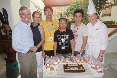 之后,大使又帶大家參觀了使館俱樂部,介紹加拿大的冰球傳統(tǒng)。緊接著,大家來(lái)到貿(mào)易處,貿(mào)易處的官員們?yōu)榇蠹易隽?a href='http://m.10tang.com.cn' target='_blank'>留學(xué)加拿大及加拿大旅游勝地的介紹,展示非常精彩,以至于在場(chǎng)的加拿大人都產(chǎn)生了立刻回家的沖動(dòng)。講解使大家無(wú)比振奮,但大使也不會(huì)虧待了大家的肚子。