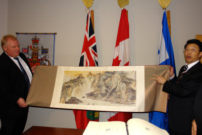 在多倫多市與重慶市結(jié)為姊妹城市25周年之際,重慶市副市長劉學(xué)普帶領(lǐng)外事、外僑、商委及經(jīng)濟信息部門的負責(zé)人組成的八人代表團,對多倫多進行訪問,并于8日拜訪了多倫多市長福特,雙方稱讚25年取得的成果,并期待未來的25年更加成功。