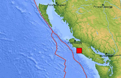 這次在加美廣泛地區(qū)都感受到的6.4地震,是于西岸時(shí)間中午12時(shí)41分發(fā)生,震央位于溫哥華島哈迪港(Port Hardy)西南偏南140公里海底23公里處,屬于淺層地區(qū)。