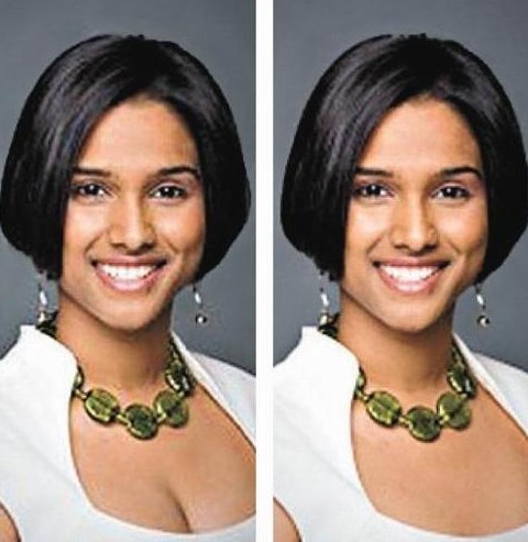 加拿大29歲國會議員西茨阿貝桑( Rathika Sitsabaiesan)一張在 Google搜尋到的照片,跟國會官方網(wǎng)站上的那相幾乎一模一樣,但 Google那張胸口出現(xiàn)「事業(yè)線」(左圖),國會官方網(wǎng)那張就沒有(右圖),相信官方有人認為照片太性感,電腦加工將「事業(yè)線」刪掉。